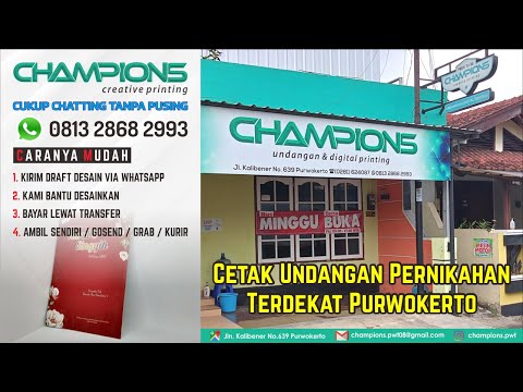 CHAMPIONS Creative Printing adalah Digital Printing di Purwokerto yang menerima jasa Cetak Banner, Cetak Spanduk, Cetak Baliho, Cetak MMT, Cetak A3, Cetak Stiker, Cetak Yasin, Cetak Buku Yasin, Cetak Undangan, Cetak Undangan Pernikahan, Cetak Undangan Khitan, Cetak Undangan Nikah, Cetak Poster, Cetak Kartu Nama, Cetak Mug, Cetak Decal Motor, Branding Mobil, dan Jasa Advertising lainnya.